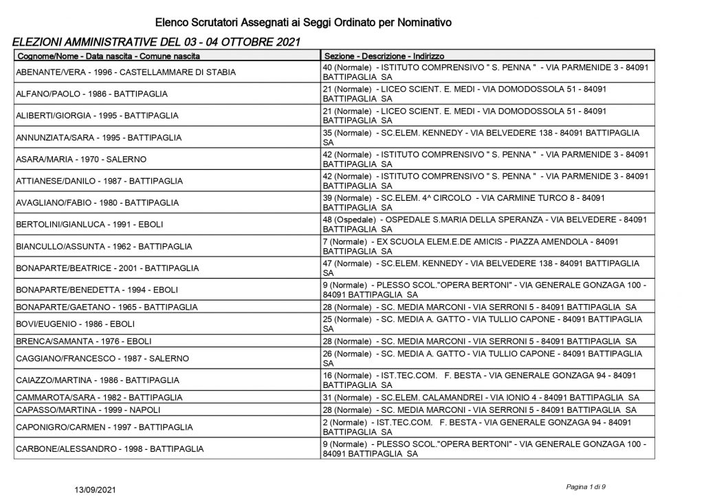 Battipaglia. Elezioni amministrative, elenchi degli scrutatori titolari e delle riserve